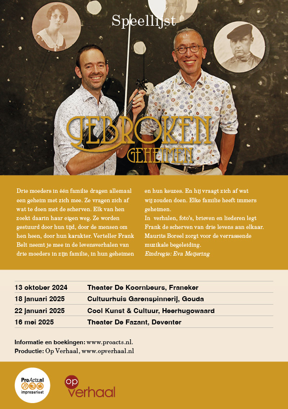 Frank Belt, oprichter van Op Verhaal, is een gepassioneerde verhalenverteller die zijn publiek meeneemt in meeslepende verhalen, vaak verweven met muziek. Zijn theateractiviteiten omvatten onder andere: Verteldiners, Samenwerkingen met musici, Educatieve voorstellingen en Workshops en talentontwikkeling. In al zijn activiteiten benadrukt Frank Belt de kracht van verbeelding, wat als een rode draad door zijn werk loopt.